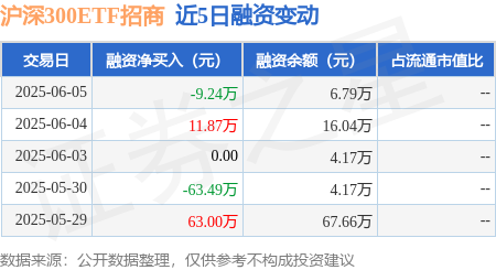 本站消息,6月5日,沪深300ETF招商(561930)融资买入10.34万元,融资偿还19.58万元,融资净卖出9.24万元,融资余额6.79万元。